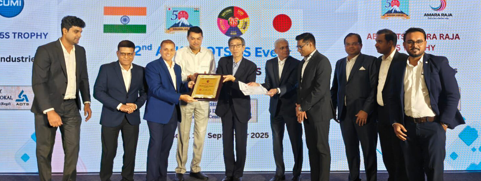 The award was presented during the 22nd ABK-AOTS Annual Certification – 2025, held on September 18, 2025 in Chennai. It was conferred by Mr. Kaoru Shiraishi, Director General of JETRO Chennai, alongside Mr. S V Sriram, CEO of Mangal Industries (Amara Raja Group), and Mr. Koshy Abraham, Executive Vice President of Carborundum Universal Ltd.